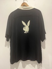 プレイボーイのレーヨンオープンカラーシャツです。ブラック×ホワイト×グレーのモノトーンカラーがとても良い1着です。また50'sモチーフのオープンカラーでレーヨン素材のボックスシルエットも最高ですね。古い年代の物では無いですがデザインも良くオススメなシャツです。