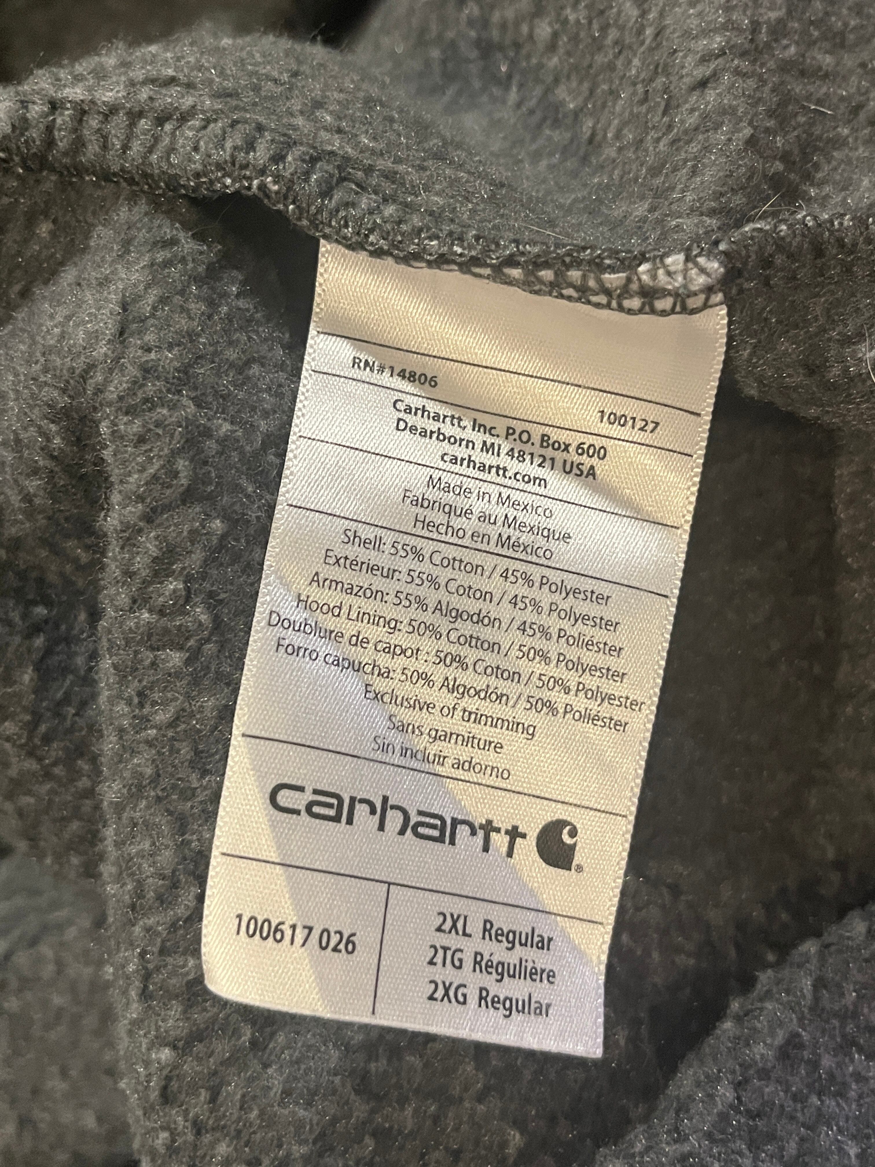 カーハートのハーフジップパーカーです。チャコールグレーボディでハーフジップ仕様となります。後付けパーカーの雰囲気もあるデザインがとてもカッコイイですね。2XLの大きめサイズですが着丈が長すぎず、身幅が広いボックスシルエットと形も良くオススメです。