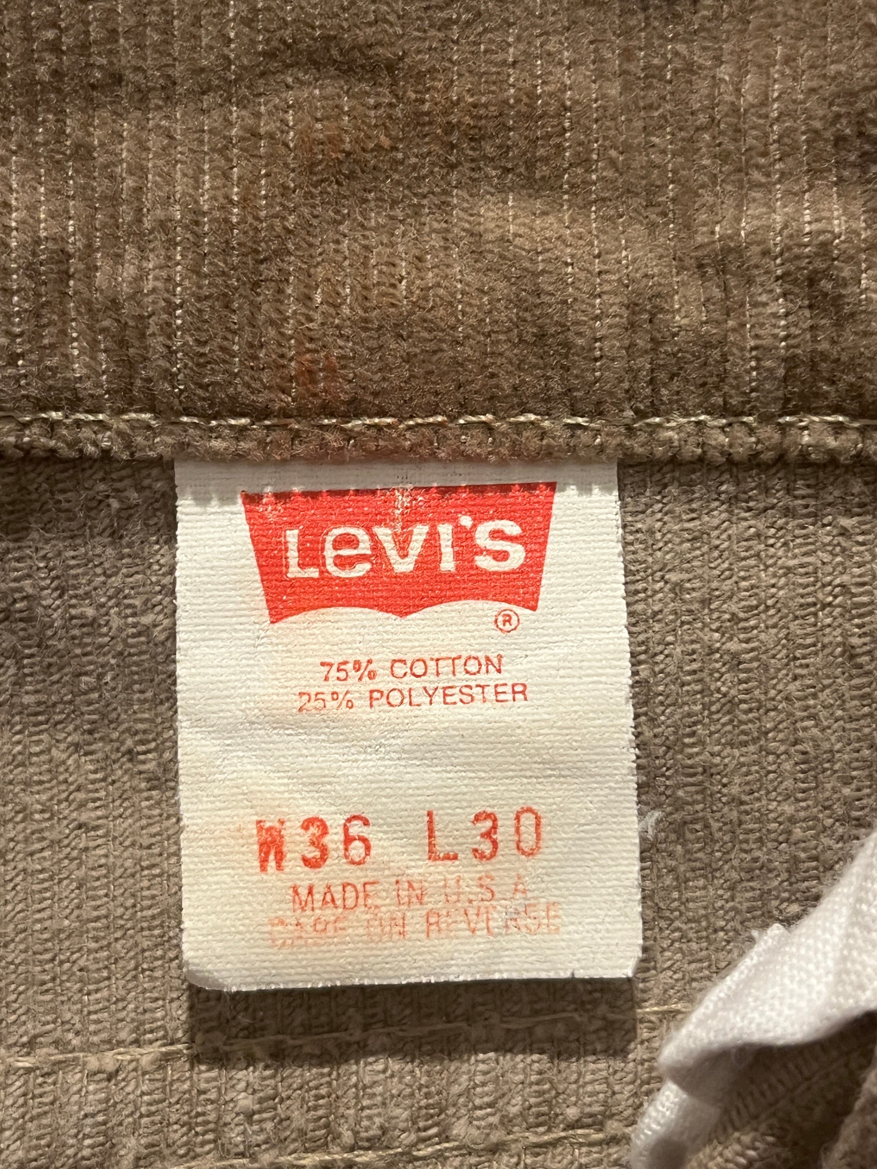 90年代アメリカ製リーバイス519のコーデュロイパンツです。モカブラウンカラーでトップボタン裏515のLevi'sジッパーとなります。そして519自体減ってきている印象で、出てきてもウエストが小さいサイズが多い中、W36×L30表記のゴールデンサイズとなります。生地が薄くなっても無く、まだハリがある生地感の519とオススメな1本です。