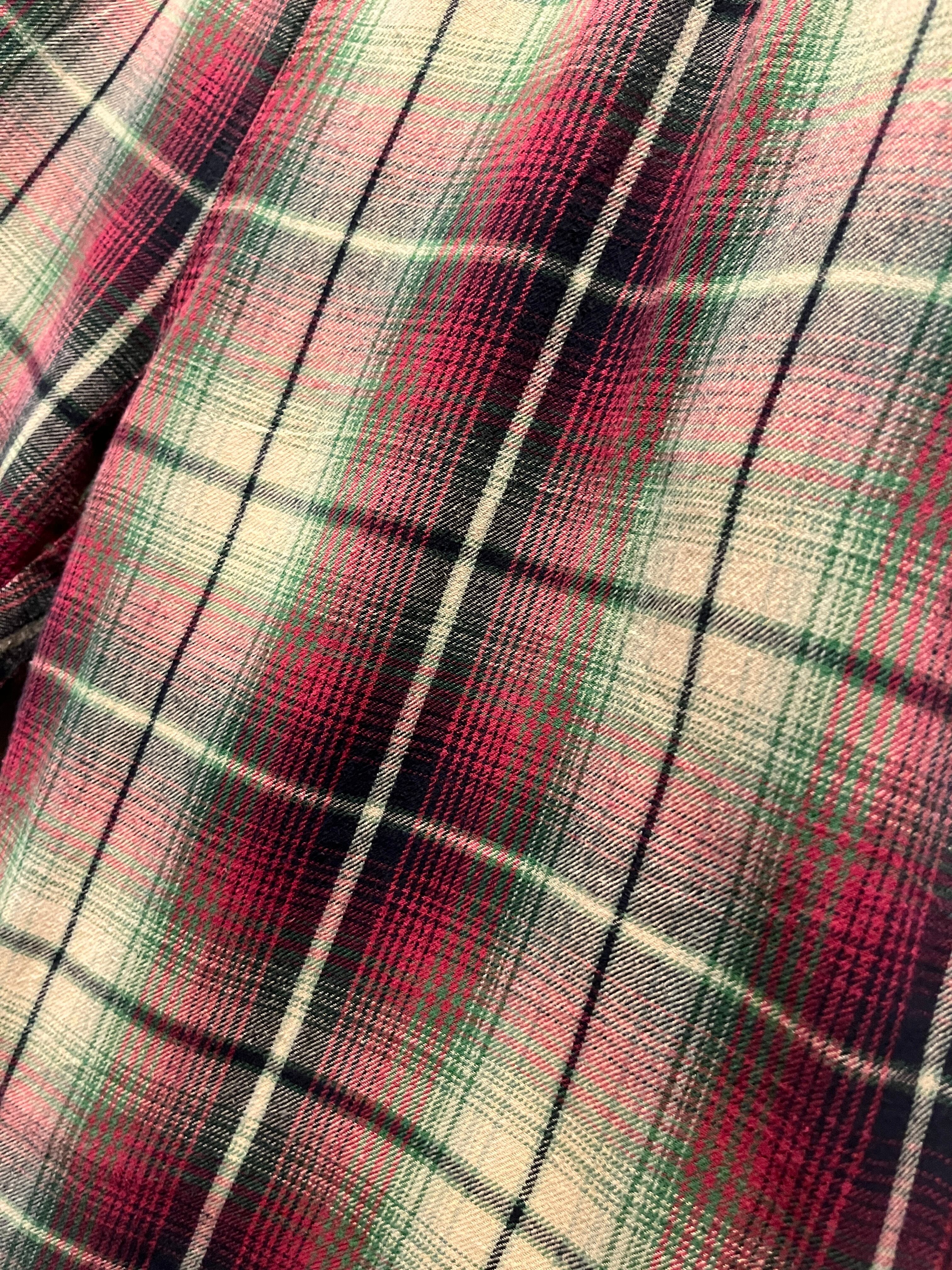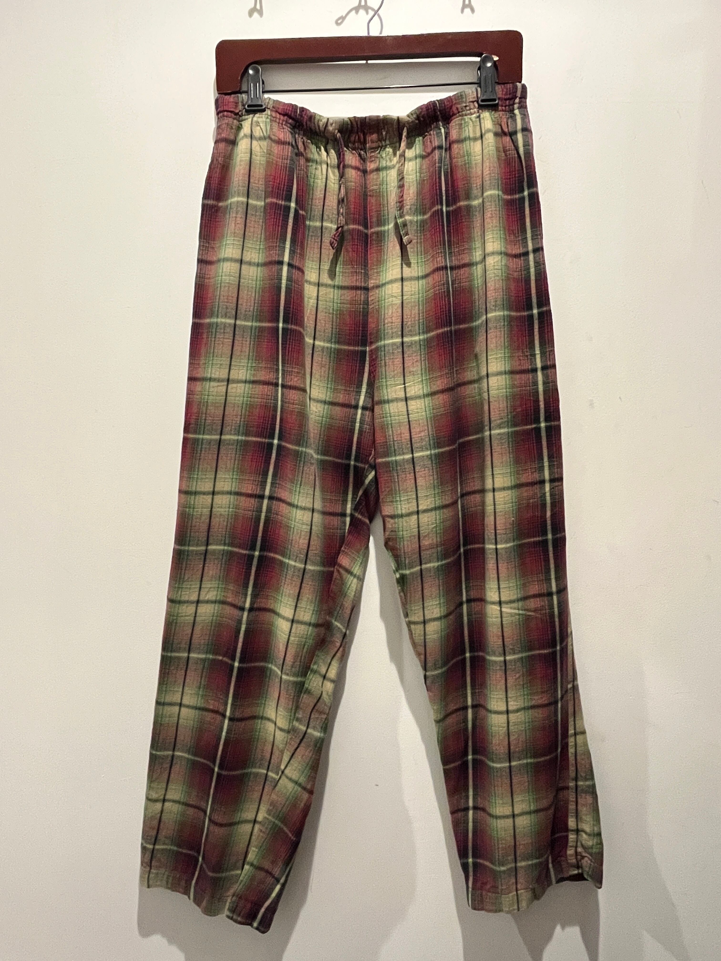 90年代オンブレチェックのイージーパンツです。配色もとても良いオンブレチェックでインド綿100%と質感も最高な1本です。しっかりサイドポケットがあり、ウエストがゴムと紐で調整出来て楽チンに履けるのもポイントですね。コンディションも良くユニセックスでオススメです。