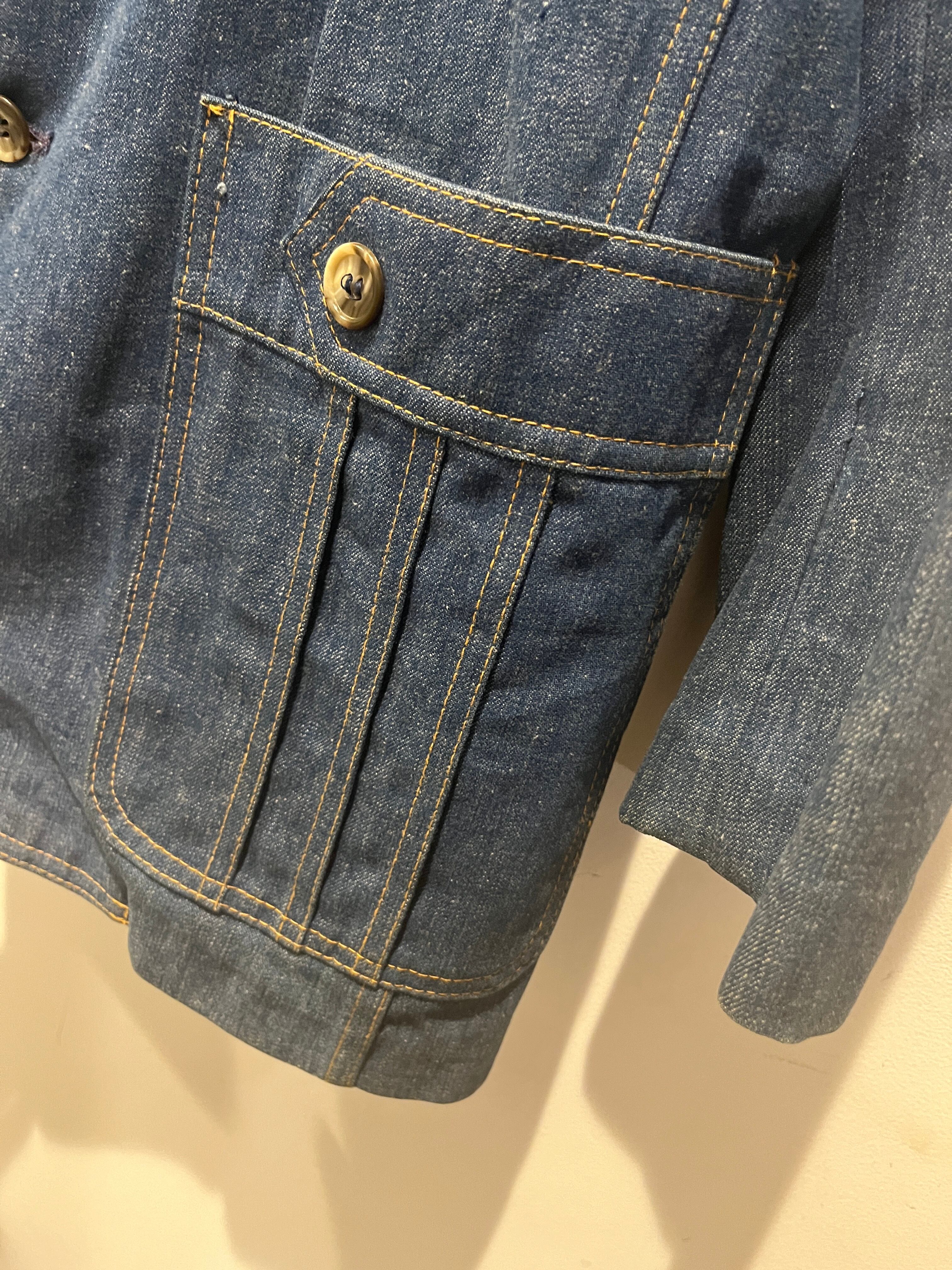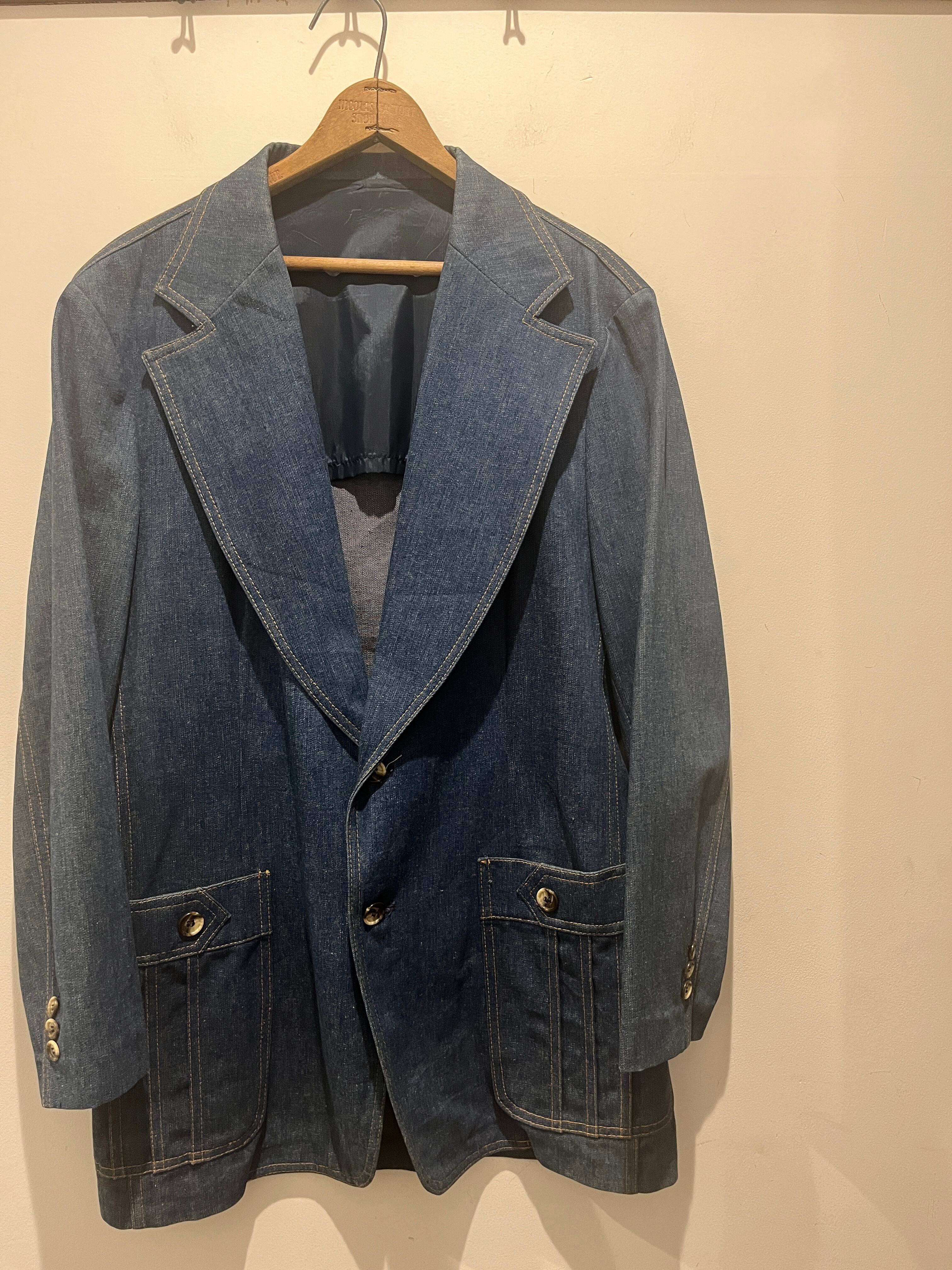 70年代アメリカ製リーのデニムテーラードジャケットです。ジージャンやカバーオールでは無く、あまり見かけないLeeのテーラードジャケットとなります。ポケットの作りなども凝っていてお洒落な1着となります。デニムでテーラードジャケットというのもポイントでオススメなアイテムです。