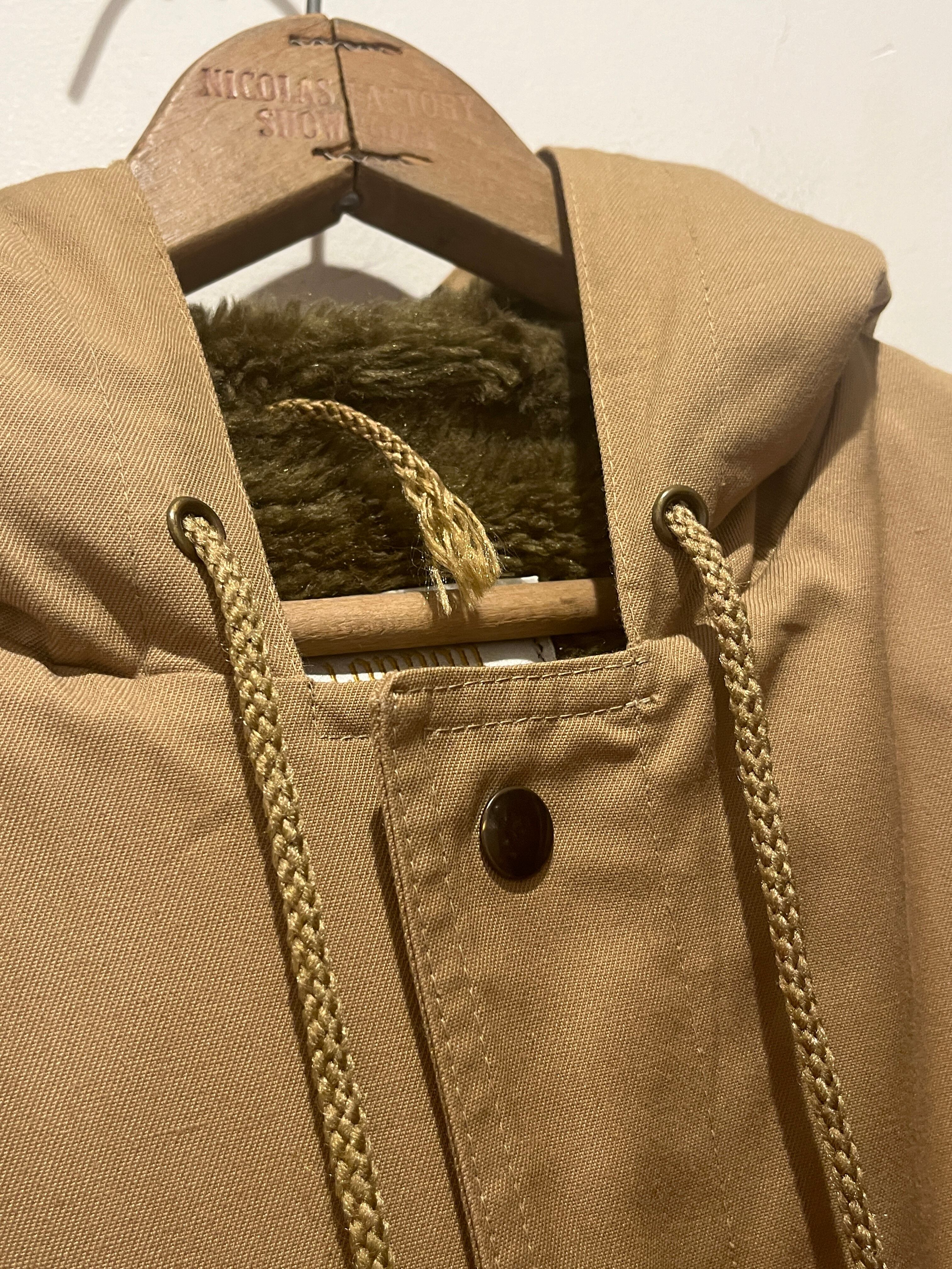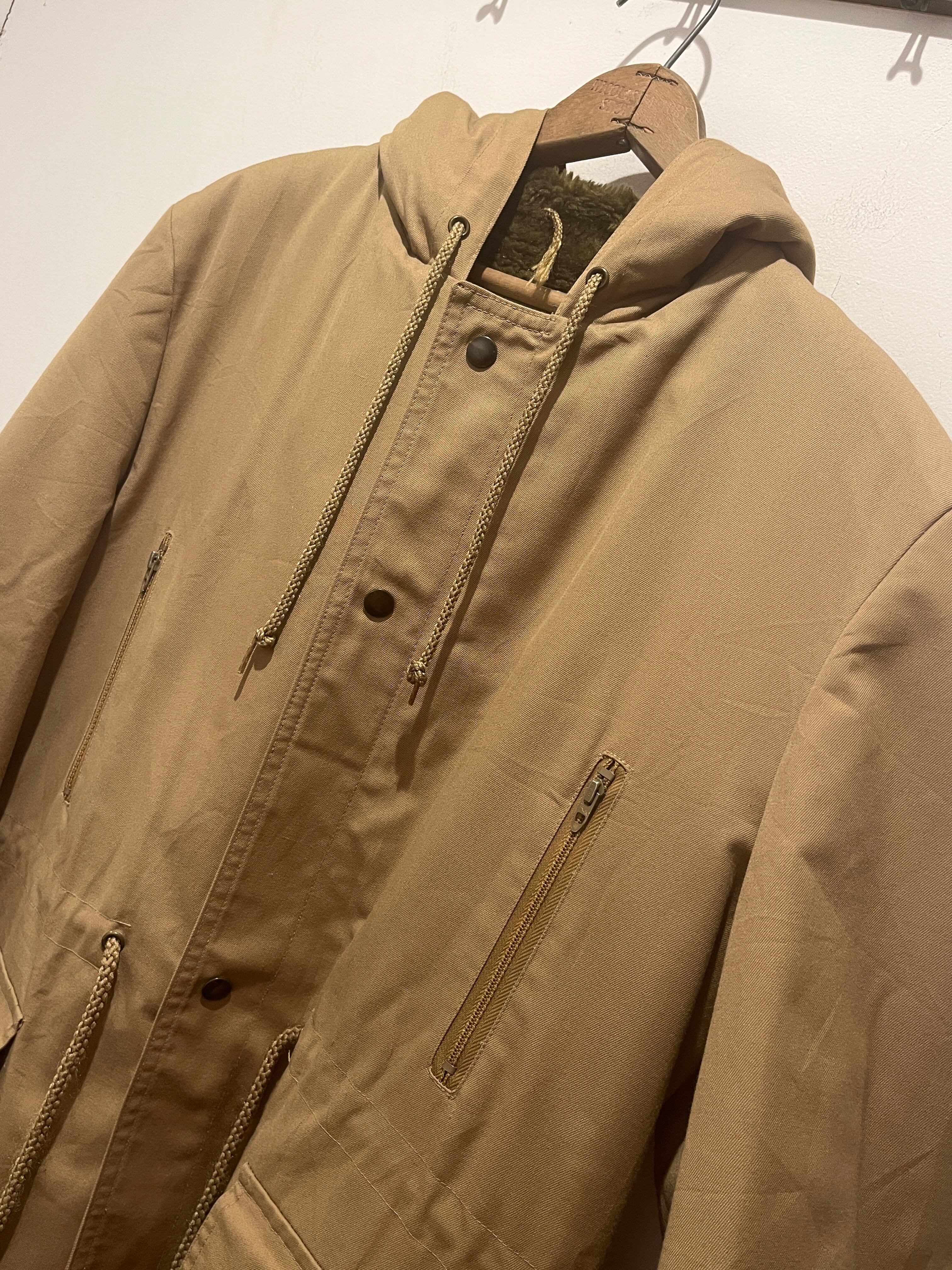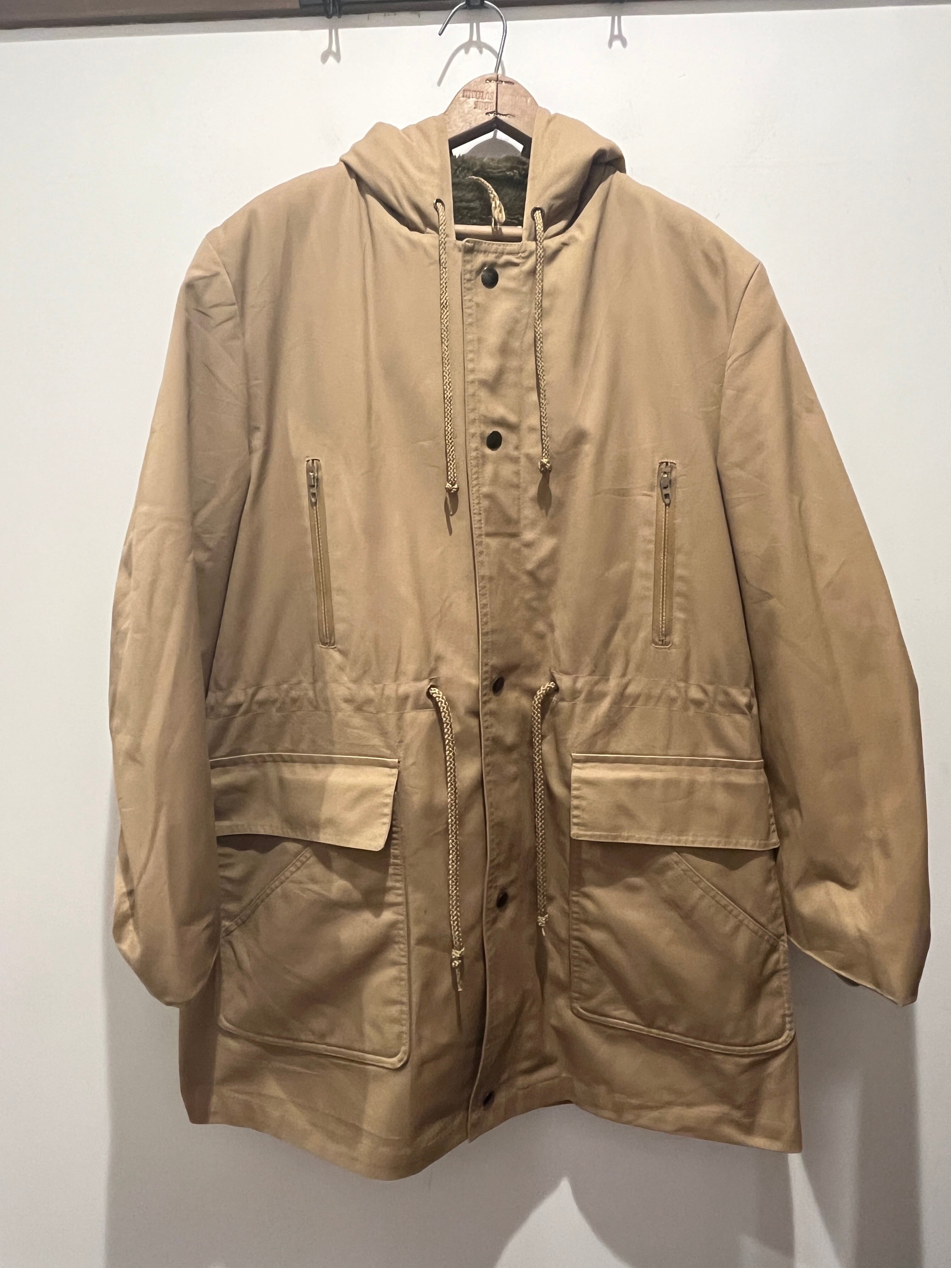 70年代ロンドンフォグのデザインアウターです。ロンドンフォグといえばコート類が多い印象ですがこちらはあまり見かけない、マウンテンパーカーとコートがドッキングされた様なお洒落な1着です。縦に2本入るジッパーポケットやフロント下ポケットのデザインもとても良いですね。ジッパーはTALONで裏のボアもフカフカで暖かく、人と被らないアウターとしてオススメです。