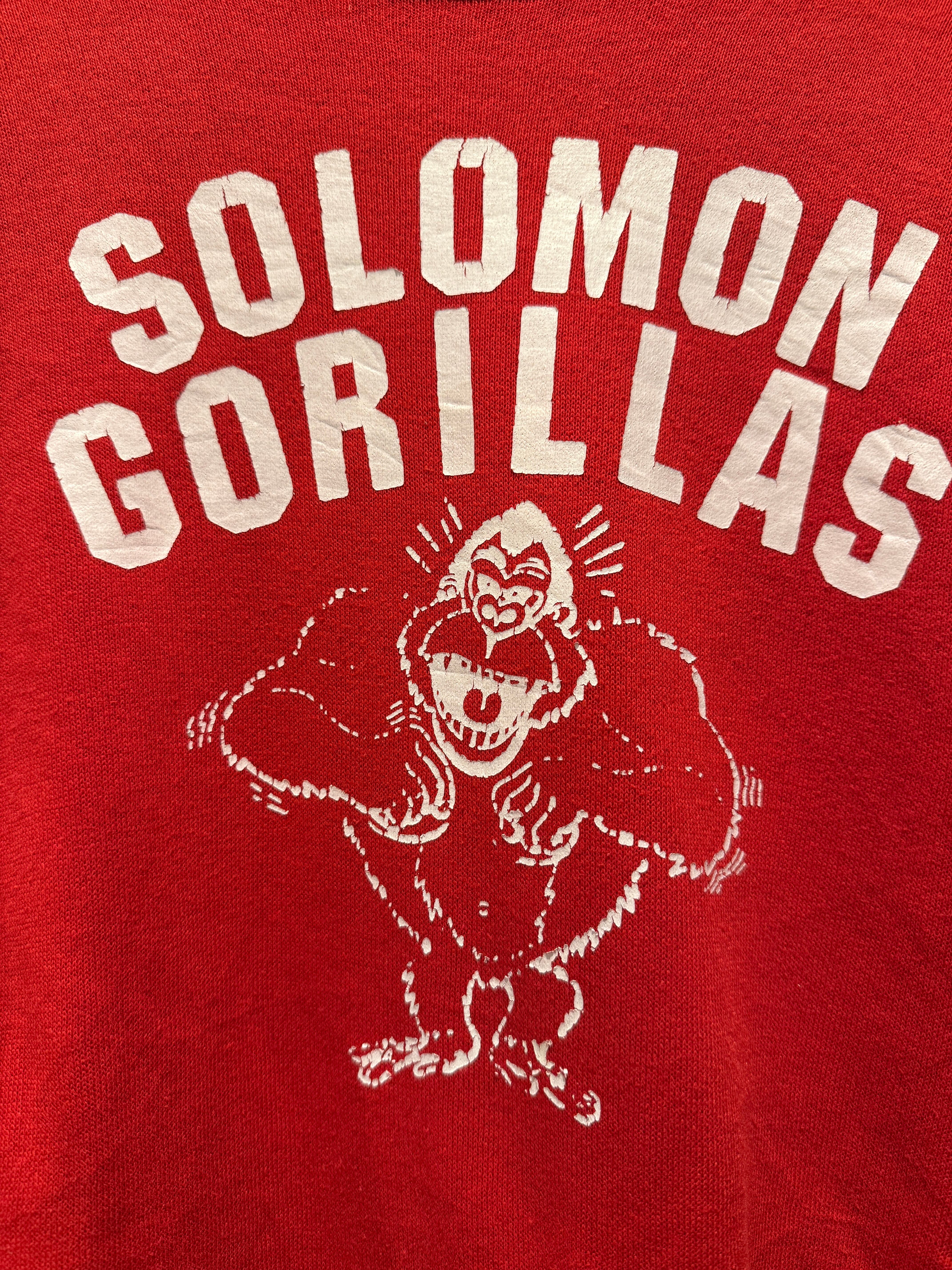 90年代アメリカ製タルテックスのゴリラプリントスウェットです。赤ボディに白のラバープリントでロゴとゴリラのプリントがとても良い1着です。ゴリラモチーフのデザインは中々見かけませんね。柔らかい生地感とかすれたプリントの雰囲気も良くユニセックスでオススメです。