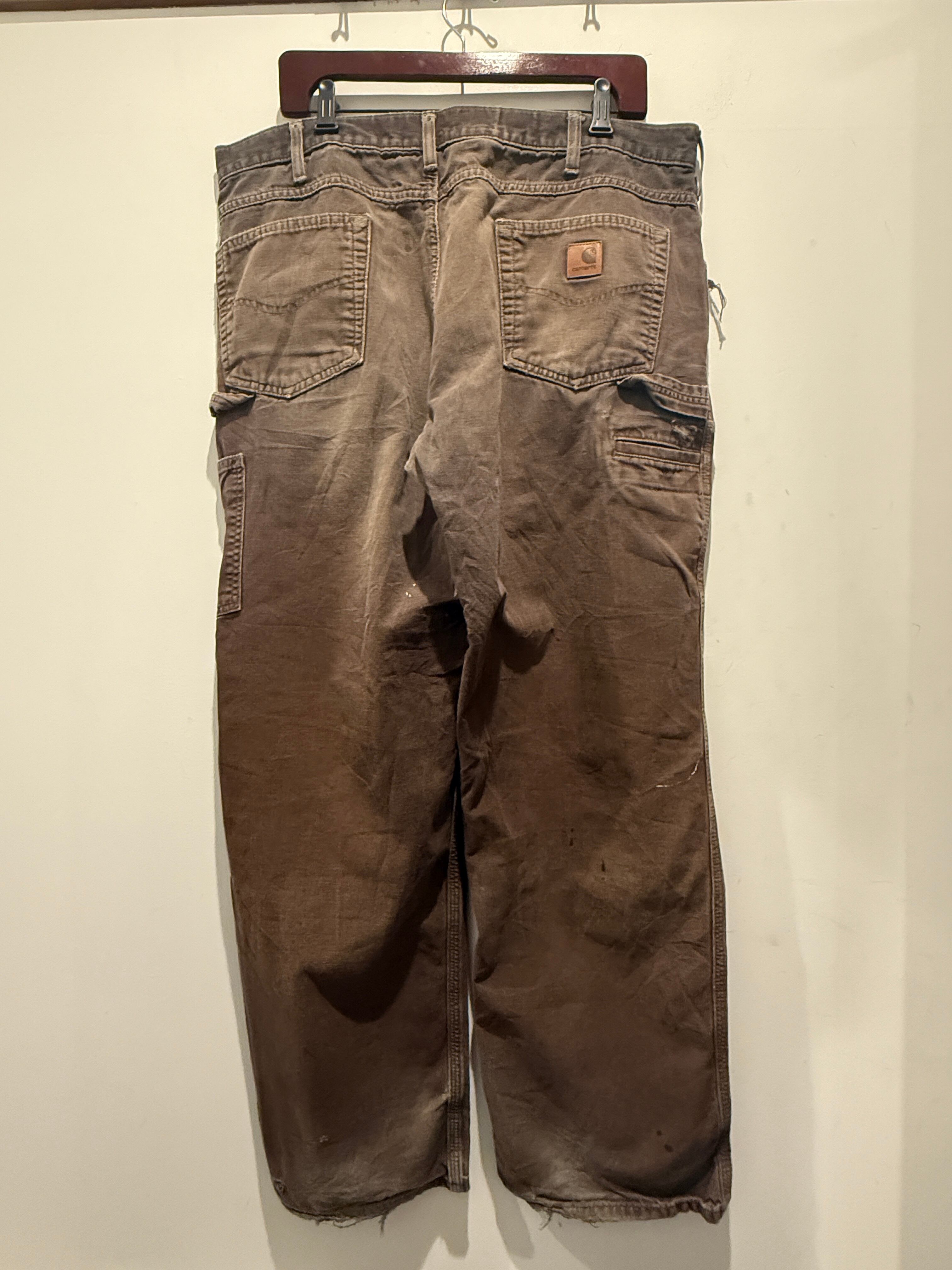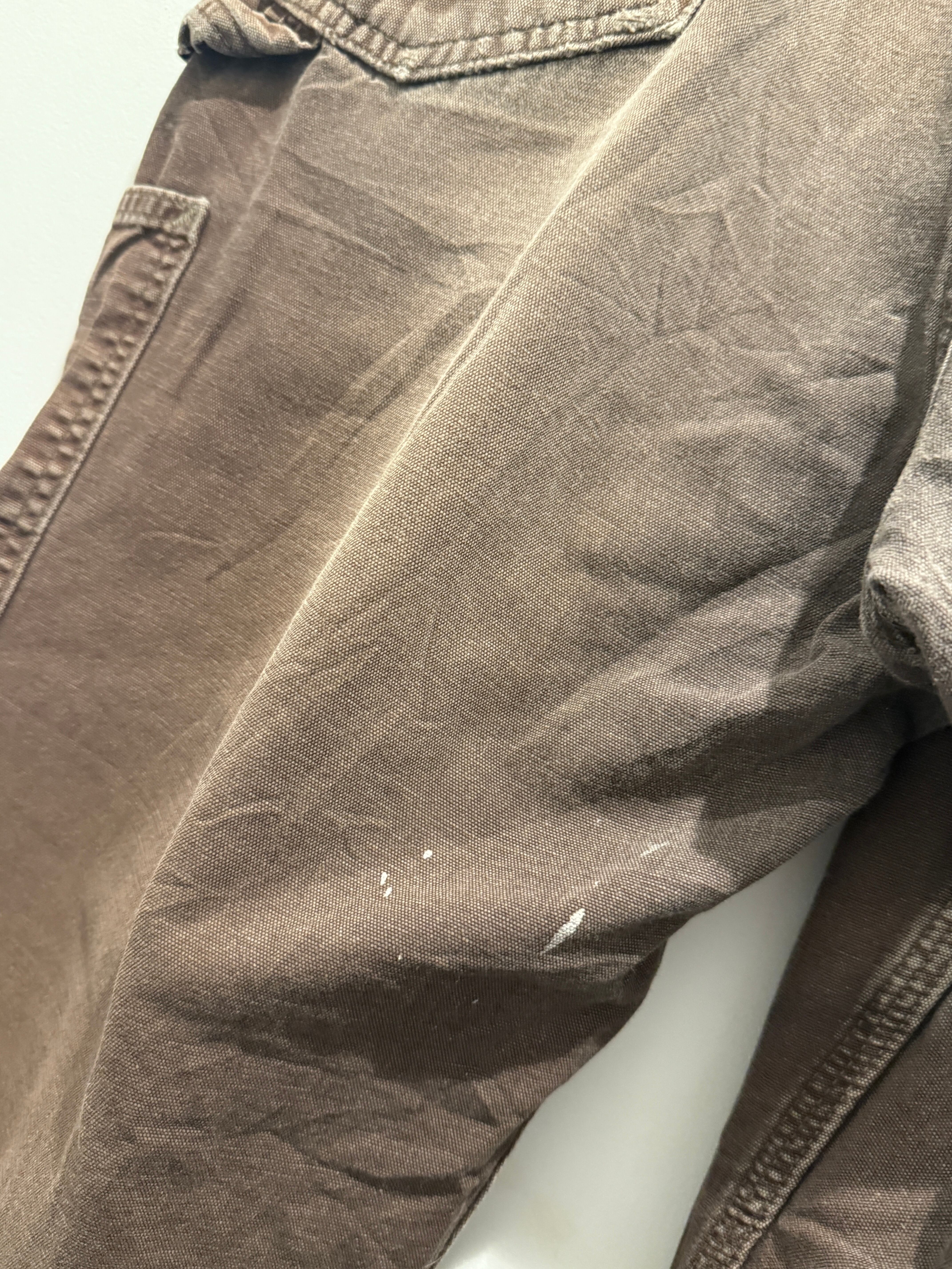 2013年製カーハートのペインターパンツです。チョコレートブラウンカラーで雰囲気抜群なペインターパンツです。色落ち具合からペンキなどリアルワークで履いていたと思われる1本でとてもカッコイイですね。ルーズフィットの太めなシルエットも良く、年代は浅めですがオススメなパンツです。