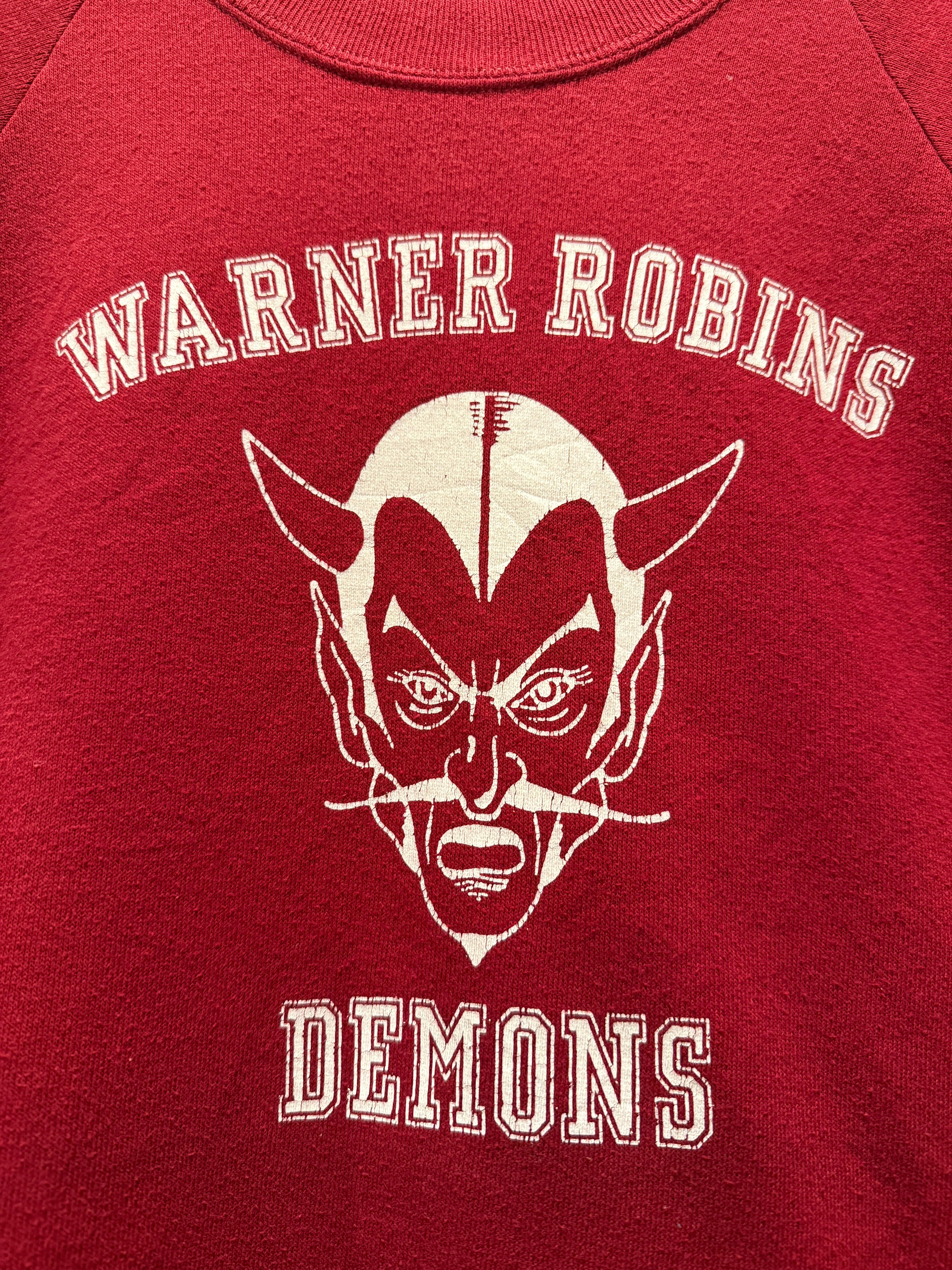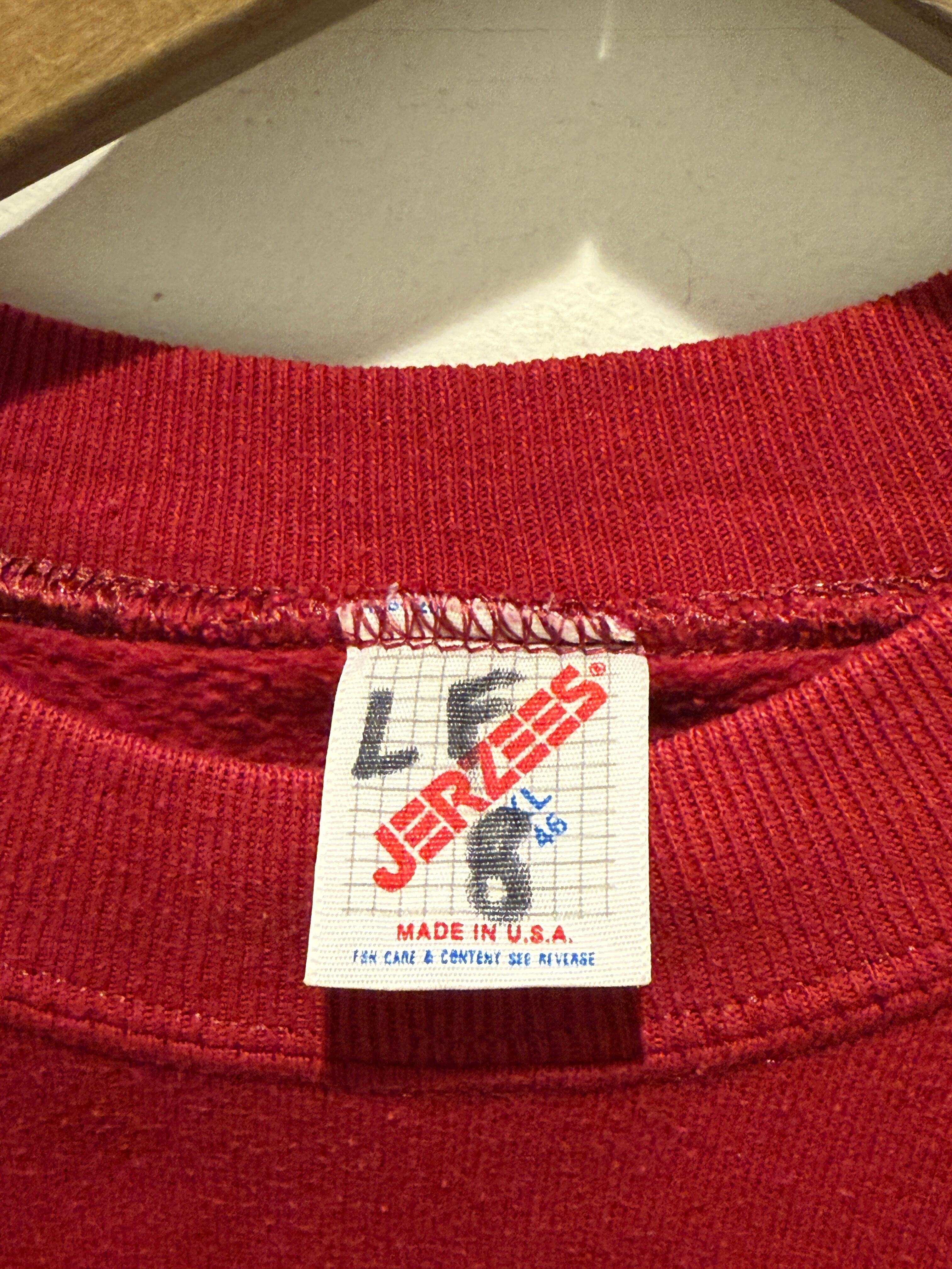 深めの赤ボディに白のラバープリントとなります。そして何よりデーモンプリントが珍しくカッコイイ1着です。80年代のスウェットとしては大きめなサイズ感も魅力的ですね。デニムパンツやミリタリーパンツとも相性良くオススメです。