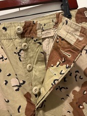 1999年USミリタリーのカモフラージュパンツです。柄の見た目から通称「チョコチップカモ」と言われる迷彩パンツとなります。こちらは1990年の官給品でしっかり軍で使われていたミリタリーパンツとなります。サイズがM-Sと言うのも最高なサイズ感ですね。裾のドローコードで絞れるのもポイントです。コンディションも良くオススメなミリタリー パンツです。