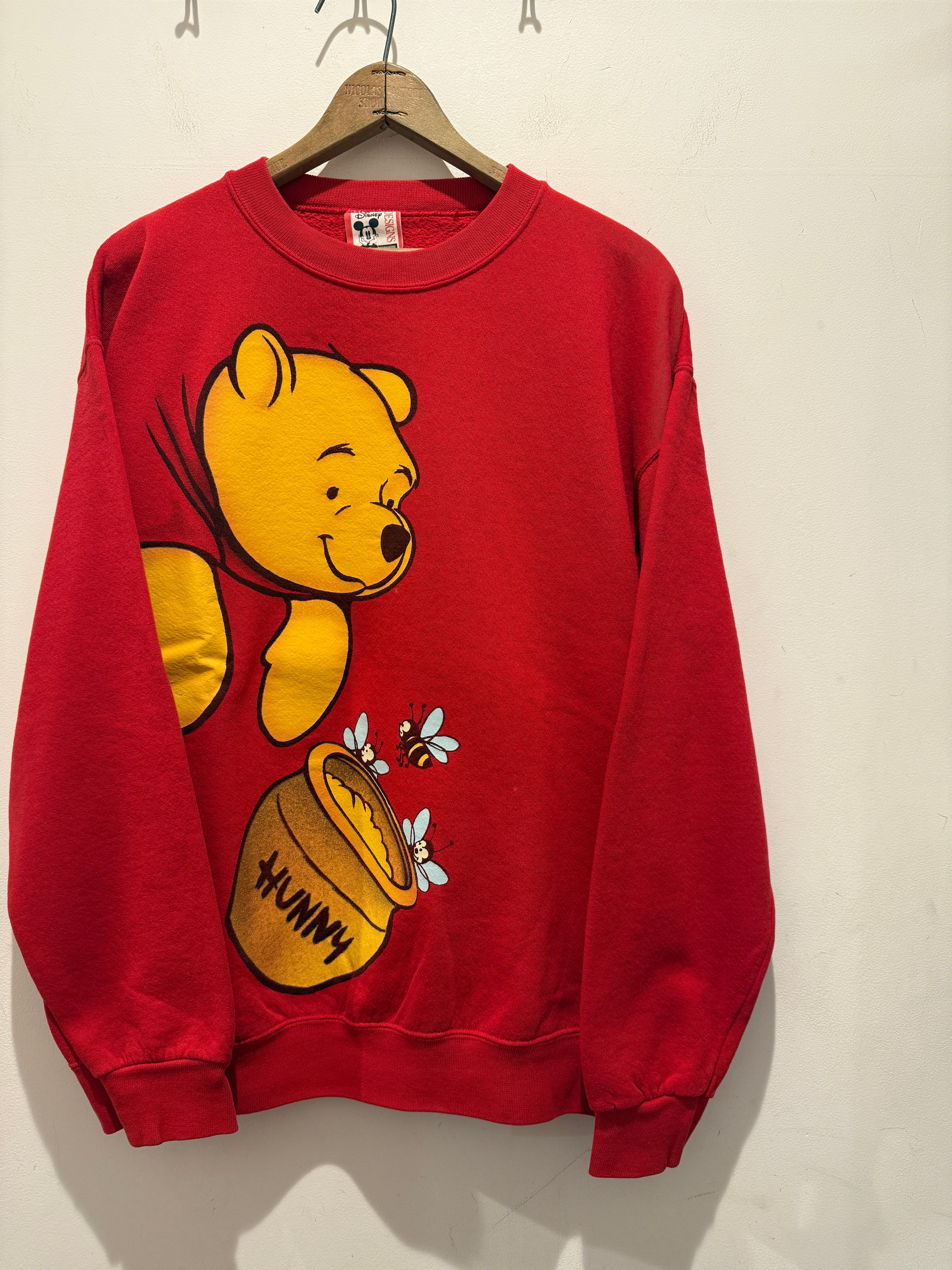 90年代アメリカ製のくまのプーさんスウェットです。赤ボディでフロントとバッグに大きくプリントがデザインされているカワイイ1着です。しっかりとディズニーオフィシャルのタグが付いていてアメリカ製とユニセックスでオススメなスウェットです。